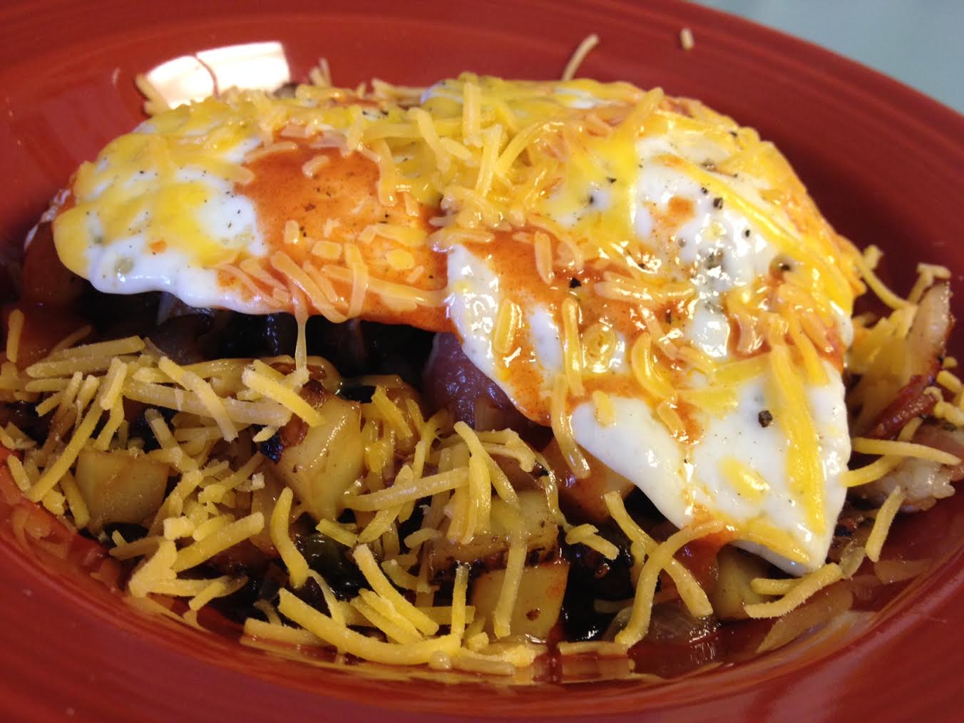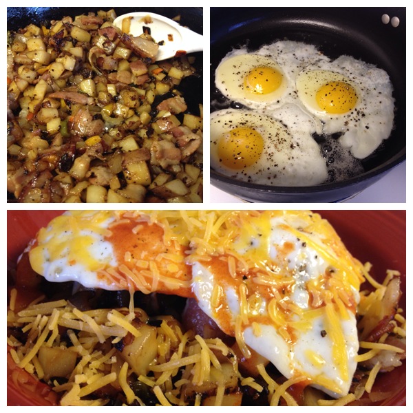 4. Put several healthy spoonfuls of your delicious hash into a bowl and top with your friend egg. Then garnish with cheese, Louisiana hot sauce, or whatever else you like.