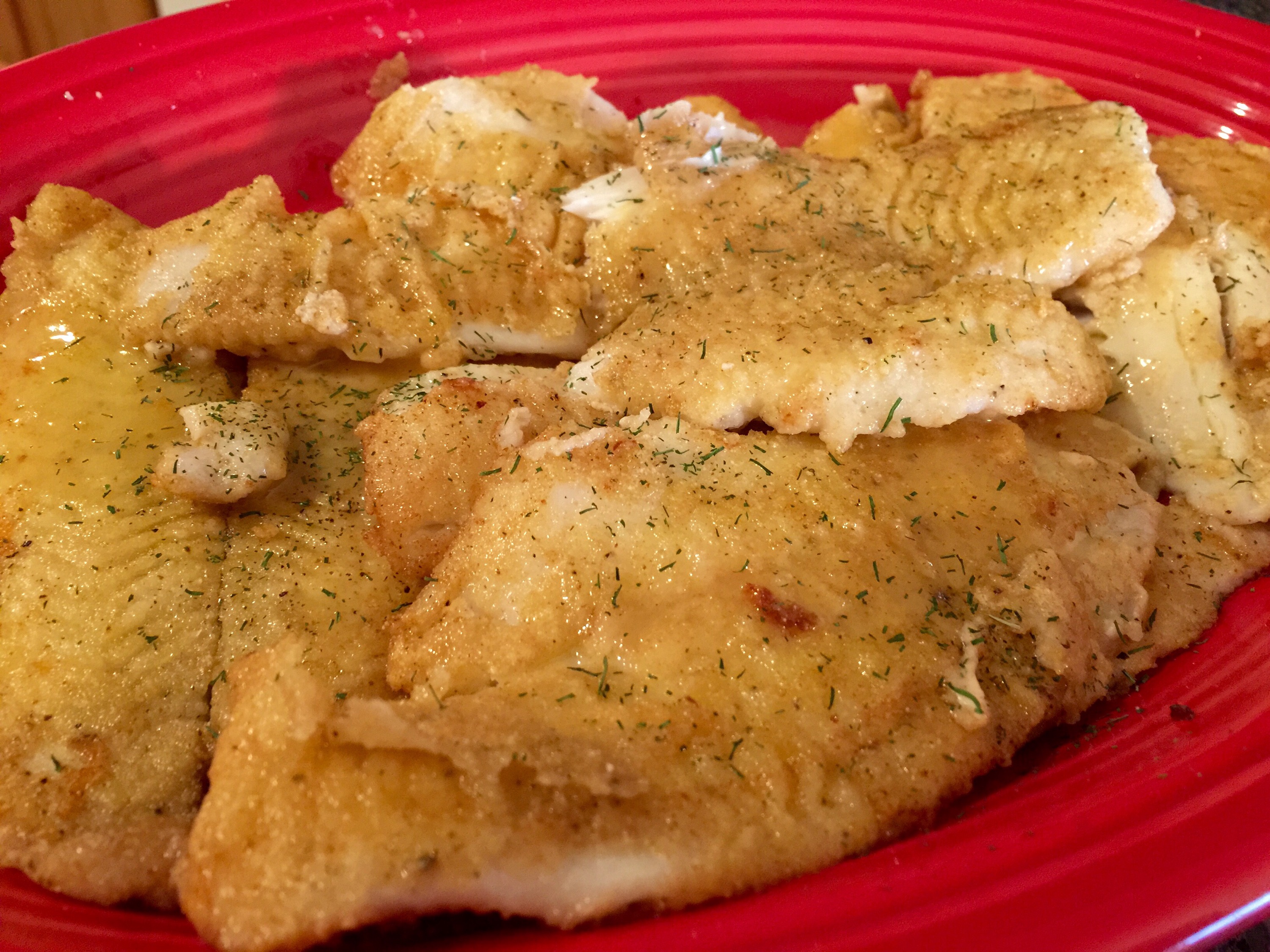 We’ve been eating a lot of fish lately and baking it, while delicious, can get a little old. So I mixed it up this week by putting a light crust on these filets and finishing them with a little lemon butter and dill. If you have rice flour, I recommend using it because it gives a light and crispy crust that you can’t get with regular flour, not to mention gluten free if you’re into that sorta thing. But if you don’t, regular flour works just fine.