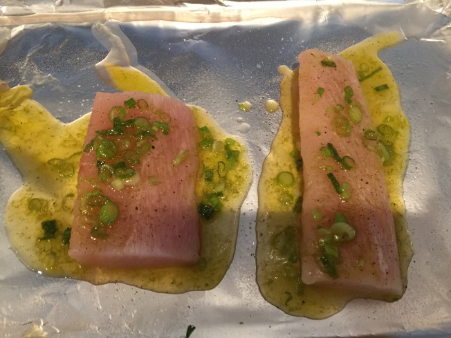 Y’all may recall I said we’ve been eating more fish in our house. Here is my latest attempt to eat something other than plain seasoned and baked fish, and I have to say it’s pretty delicious and I’ll be making it again. It will work with any fish I’m sure, but this was for one pound of mahi mahi.