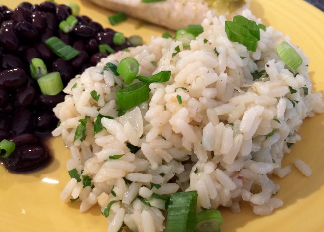 4. Cook the rice 20 minutes (or as your instructions say for your specific kind of rice) and once it’s done, add a few handfuls of chopped cilantro. I also like to garnish mine with green onion and another squeeze of fresh lime. And don’t forget the most important part – a margarita!