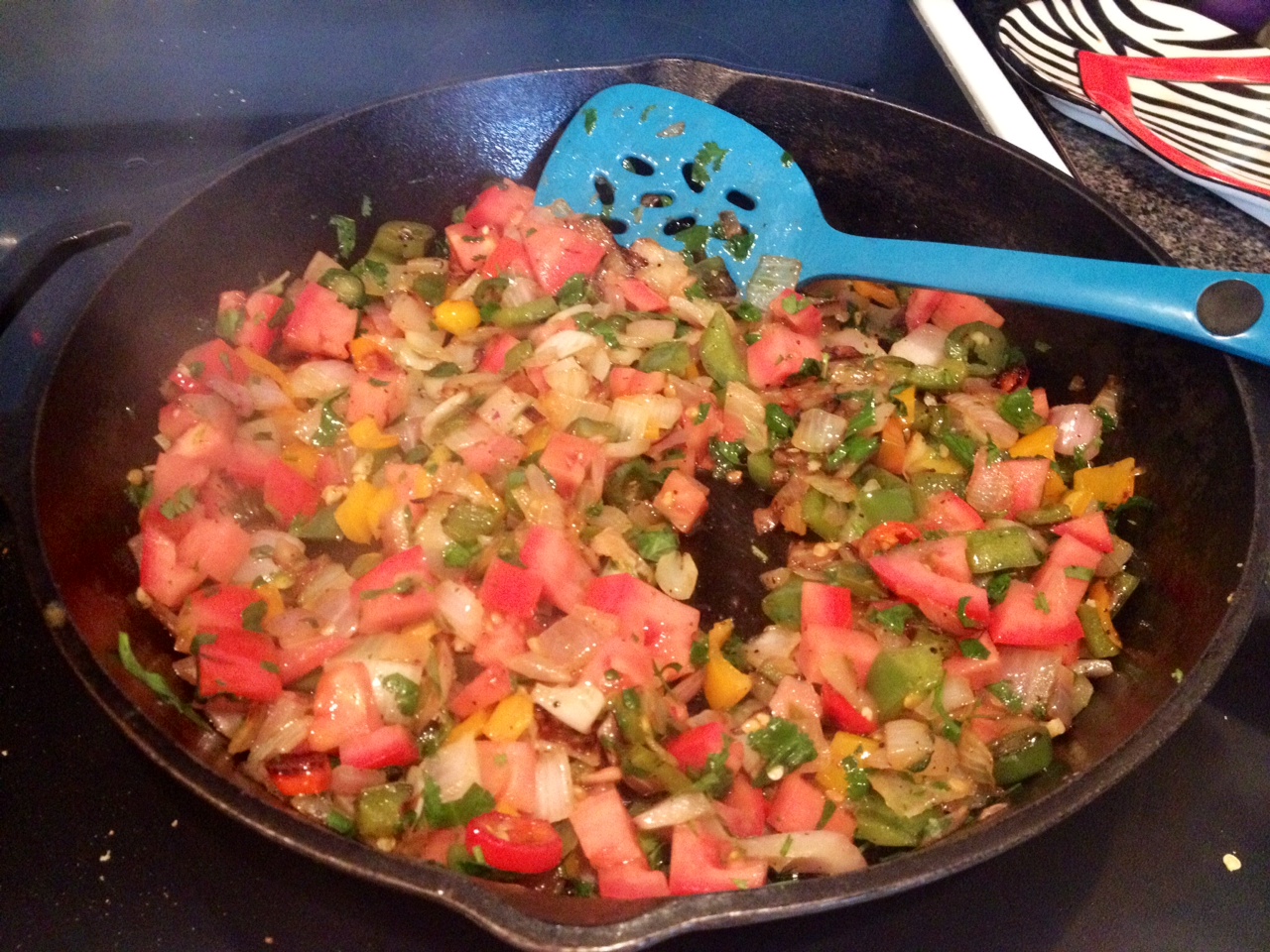 2. Turn the heat off and add your chopped tomatoes and cilantro and add additional salt if needed. Stir that around until everything is incorporated.